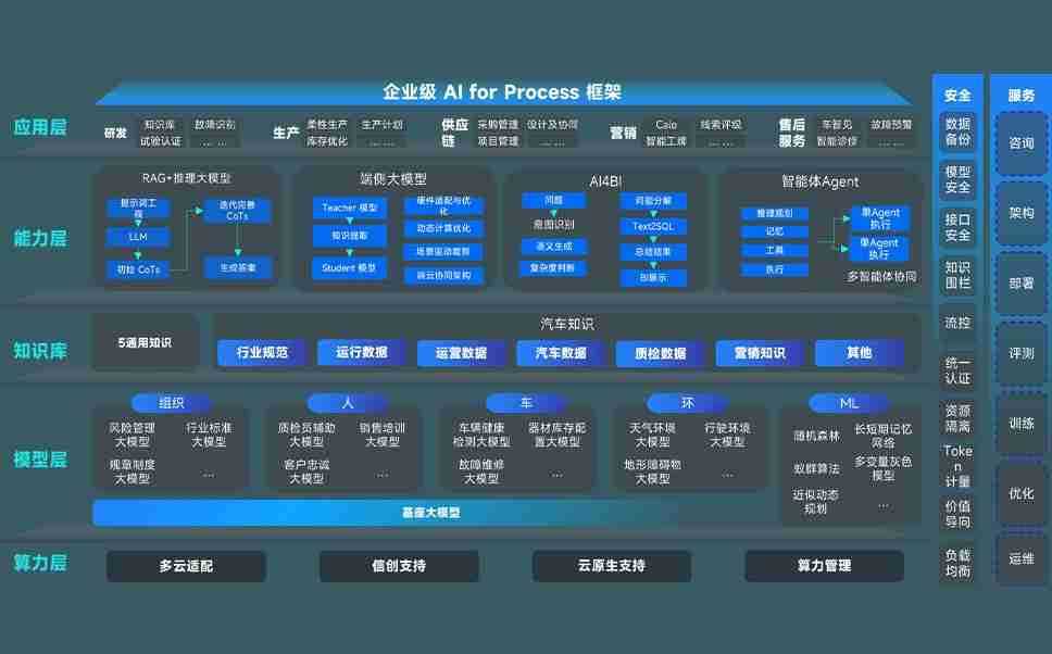 918博天娱乐官网问学智车解决方案是一套基于AI技术的汽车行业智能化系统,,覆盖从底层算力到顶层AI应用的全栈方案。。。。方案由算力层、、模型层和应用层组成:算力层,,,方案支持多种一体机配置,,具备云端灵活部署、、多云适配以及动态优化计算资源的能力;模型层,,,918博天娱乐官网问学平台版提供了企业级AI应用一站式构建与管理平台,,支持基于后训练强化技术的汽车企业专属模型的训练、、、、评测和运营;应用层,,,918博天娱乐官网问学DeepSeek版提供包括超级员工、、、智能招采、、、智能营销、、、智能客服、、、、AI for BI等一系列解决方案,,可助力汽车行业实现数字化转型,,,让管理更智能、、、响应更敏捷。。。。